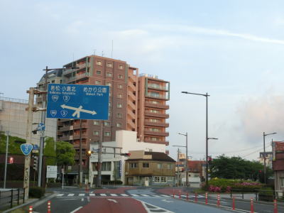 | 東小倉駅跡を過ぎると山陽新幹線の高架橋をくぐって福岡r265砂津2交差点を通過する。新幹線も停まる小倉駅に近い場所であり周辺には中高層の集合住宅が目立つようになり、交通量も増える。 | ||