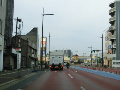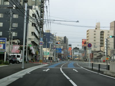 | 10.4車線道路 | 11.左側車線はバス優先車線(7-9,17-19時) | 12.福岡r262大川橋交差点 |