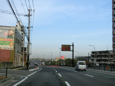 | 片上町交差点の手前で車線が増えて4車線道路になるが、左側車線はバス優先車線(7-9,17-19時。日曜休日を除く)である。小森江駅を過ぎた所で福岡r262大川橋交差点を通過する。r262に案内されている大川ICはE3九州道ではなく北九州都市高速4号線のインターチェンジである。 | ||