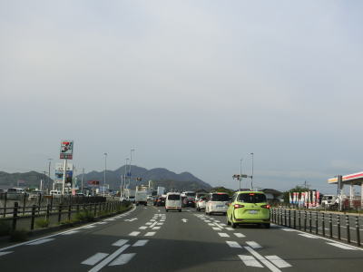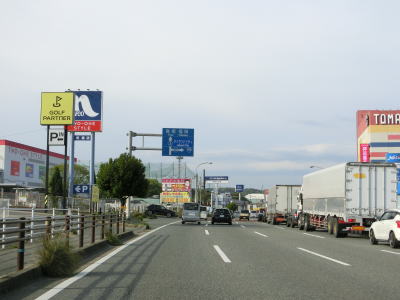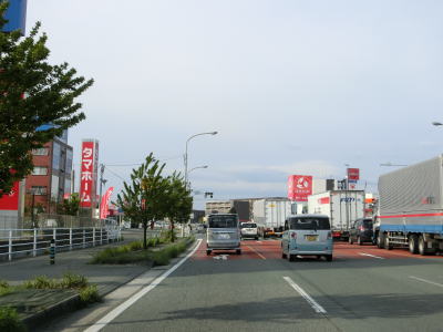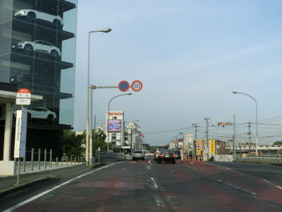 | 53.片側2車線道路が続く | 54.某トヨタ系ディーラーの展示車両 | 55.交通量は多い |