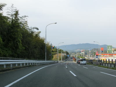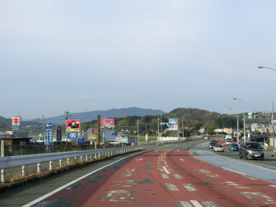 | 下り勾配が終わる手前で石丸跨道橋で福岡r29の上を通って福岡r463冨地原交差点を通過する。平坦な片側2車線道路を少し走ると福岡r75徳重交差点を通過する。宗像市の中心部からはやや慣れているものの幹線国道のため交通量は多い。 | ||