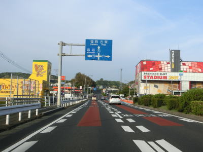 | 新宮町に入ってからも沿線には商業施設が建ち並んでおり交通量も多い。福岡r539上府交差点、福岡r540大森交差点を通過するが、どちらの交差点も右折する車両が非常に多かった。 | ||