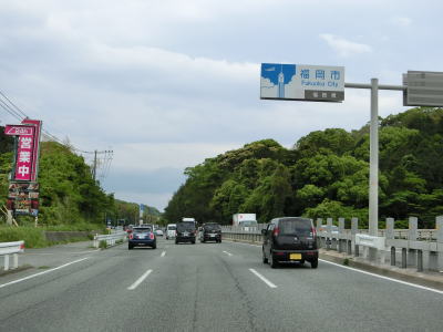 | 西郷川橋で西郷川と福岡r30の上を越えるとr30とのランプを通過する。r30からの側道がそのまま左端車線となり、以降は片側3車線道路になる。当然ながら交通量は非常に多い。 | ||