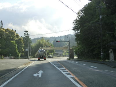 | 緩やかな勾配を下っていると熊本r53豊田交差点を通過する。交差点の直後には熊本r330が交差しているが、平面ではなくカルバートボックスを通っている。豊田橋を渡ってから熊本r199交差点を通過する。r199は日曜と休日を除く7:30〜8:30の時間帯は歩行者・自転車専用道路になるため進入できない。これは吉松小学校があるためであろう。r199交差点からはほとんどカーブのない状態で加茂坂を上って行く。 | ||