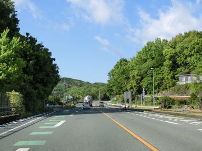 | 旧道らしき市道との交差点の直後に視界が開けて明るくなる。熊本r3一木交差点を通過してすぐに道の駅「すいかの里植木」の前を通る。道の駅の南西は熊本r329との交差点があり、名称は道の駅植木である。道の駅植木交差点からは沿線の商業施設が増える。約300mでr329との植木6交差点を通過するが、こちらは現道である。おそらく道の駅の整備に合わせてバイパスが造られたものと思われる。 | ||