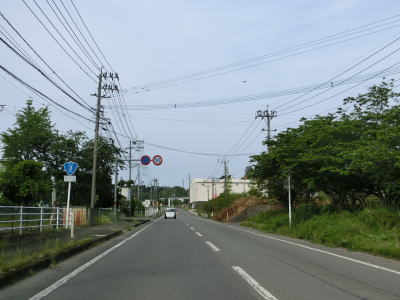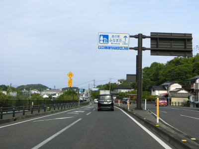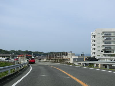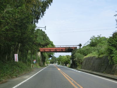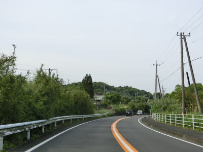 | 海沿いを通っている市道(港湾道路?)の月の浦橋の傍でやや急な左カーブを曲がる。その先の右カーブを曲がると肥薩おれんじ鉄道から少し離れる。市街地を過ぎて交通量はやや少なくなり信号機付きの交差点も殆どないため流れは良くなる。一時期に離れた肥薩おれんじ鉄道の跨道橋をくぐる。 | ||