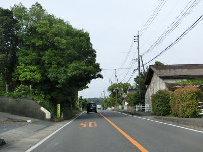 | 多田交差点の直後に陣之尾橋を渡るが、その手前にも路面冠水に注意を促す「!」標識が設置されている。肥薩おれんじ鉄道の折口駅に向かう市道との折多小前交差点を左にカーブしながら通過した後は沿線の家屋が途切れて山間部を通る。 | ||