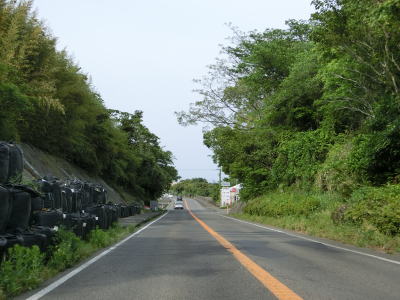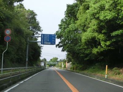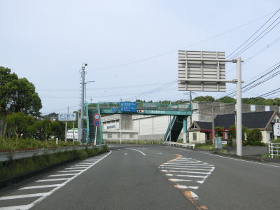 | 鹿児島県に入ってからも道路状況と風景に大きな変化は見られない。海岸線に近い場所を通っているものの海が見える場所は殆どない。反対の山側に視線を向けるとコンクリートで固められた山が視認できる。R3/E3A南九州道の建設に伴うものであろう。北薩オレンジロードという広域農道との前田交差点を通過して緩やかな右カーブを曲がると前田跨道橋をくぐる。 | ||