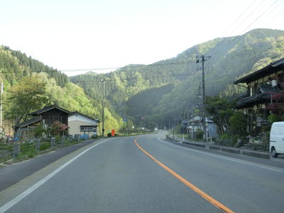 | 勝木川の右岸を走っていると北田中パーキングを通るが、ここには公衆トイレが設置されている。下大鳥トンネルをくぐった先で長坂洞門をくぐり、引き続き勝木川の右岸を走る。 | ||