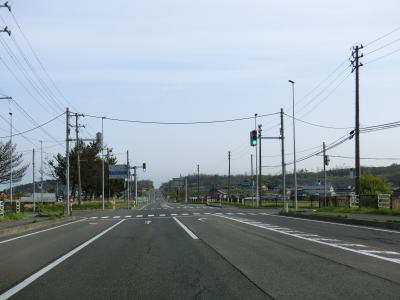 | 出戸集落付近で右カーブを曲がってR7も海岸線から離れて内陸へと進み、JR羽越本線と近接する茂秋田r43西目高校前交差点付近で再び離れて行く。西目高校前交差点からは平坦な直線道路を真北に向かって走る。 | ||