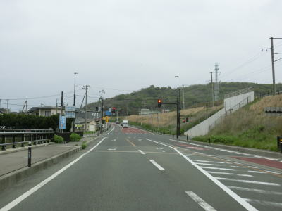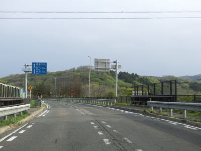 | JR羽越本線の東を北に向かって走っていると南向きの反対側車線にゆずりあい車線が設置された区間を通る。延長は約1.0kmと結構な長さである。道川こ線橋の直後に側道が分岐するが、道の駅「岩城」の出入口に当たるため道の駅に寄るには側道へ進む必要がある。 | ||