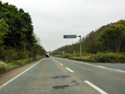 | 雄物大橋を渡り終えてすぐに秋田r65南浜ランプを通過し、側道が合流する辺りで緩やかな右カーブを曲がる。片側2車線道路のまま秋田市の市街地に到達すると思いきや、右側車線が減少して対面2車線道路に戻る。 | ||