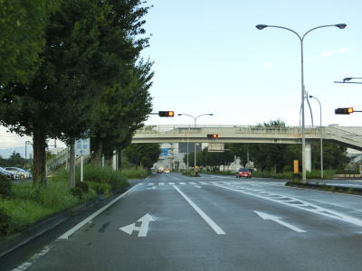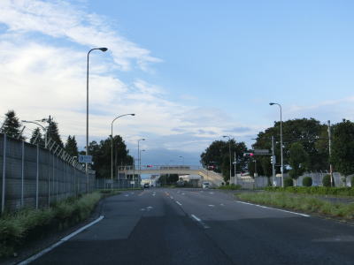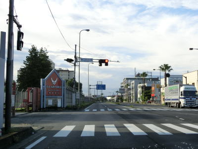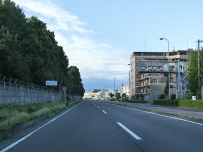 | むさし野南交差点を過ぎると横田基地を囲んでいるのがフェンスから遮音壁のようなコンクリート製に替わる。フェンス部分は滑走しかないが、コンクリート壁部分は建物等があるため見せたくない・見られたくないという事だろう。 羽村市に入った直後に横田基地12ゲート交差点を通過するが、東側だけでなく西側も米軍施設である。右左折は禁止されていないが、交差点の直後にゲートがあるため一般車両は直進するしかない。交差点の南に設置された横断歩道橋も両側の歩道ではなく横田基地の敷地内にあり、東西の基地間を往来するためのものである。 横田基地12ゲートから少し走ると福生市に入る。羽村市域を通っている距離は500mに満たない。左カーブを曲がった東福生駅の東を通り過ぎて東京r165第二ゲート前交差点を通過する。横田基地の反対の西に延びているのがr165である。 |