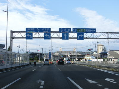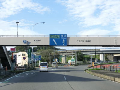 | バイパスと分岐してからも片側2車線道路が続いており、交通量もかなり多い。約500m走るとE20中央道の八王子ICを通過して新左入橋と左入橋をくぐる。前者は八王子市街方面からの入口ランプ、後者は入間方面への出口ランプである。現道とバイパスが並走している場合はバイパスにインターチェンジが接続しているパターンが殆どだが、ここでは現道に接続している。もっとも、現道と言っても交通量は多く寂れた雰囲気は一切感じない。 八王子バイパスから少し走ると下り勾配に転じ、勾配が落ち着いた所で東京r166谷野街道入口交差点を通過しながら左カーブを曲がる。八王子市の市街地から少し離れているが、沿線には意外に多く商業施設が建っている。 |