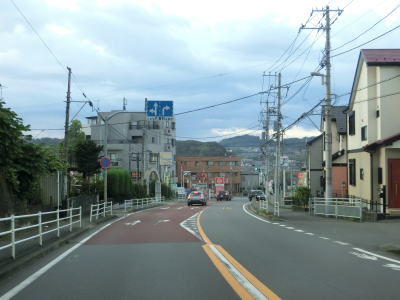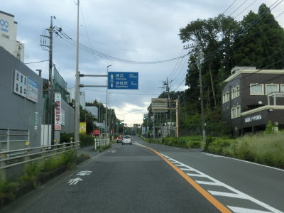 | 丸山坂を越えると下り勾配となり、下り切る手前で右カーブを曲がってR411・東京r169左入町交差点を通過する。直進車線は左折兼用を含めて3本あるが、次のR16八王子バイパス・r169との左入橋交差点で左端車線が左折専用車線になる。直進、左折ともにR16と案内されているが、前者が現道で後者がバイパスである。今回は直進して現道へと進む。 | ||