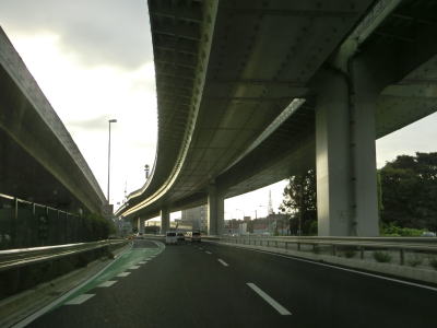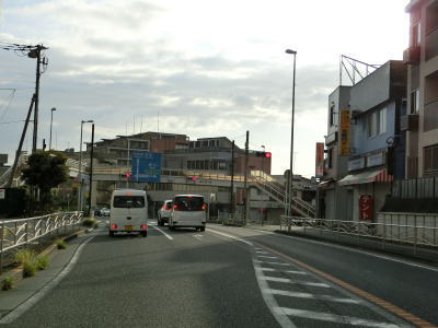 | 399.神奈川r51谷口陸橋下交差点は立体交差 | 400.谷口陸橋 | 401.片側3車線道路を走る |