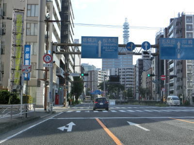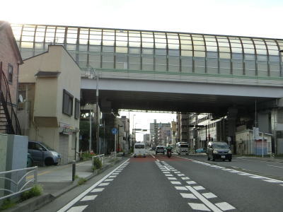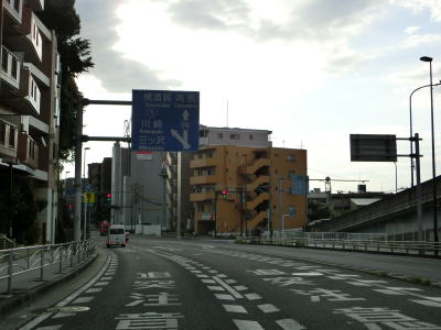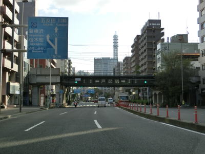 | 浜松町交差点からは片側3車線道路になるが、バス停や出入口を除いて仮設の簡易防護柵が置かれているため車道としての利用は不可能である。沿線の古い家屋が徐々に立ち退いて車道よりも奥に新しい建物(多くはマンション)が建てられて歩道の幅が確保できる部分から道路が造られているようである。全ての家屋が立ち退いて左端車線が繋がった後に供用されるものと思われる。 片側“2”車線道路を走っていると神奈川r80西平沼交差点を通過する。r80だけでなくこれまで交差した神奈川r17、神奈川r83、神奈川r81は厳密に言うと横浜市道である。ただし、r81を除いてウォっちずでは県道扱いされており、スーパーマップルでは4つとも県道扱いされている。 西平沼交差点からは正式に片側3車線になるが、京急本線の跨道橋の橋脚のせいで両方向とも左端車線がやや狭くなっている。東向き車線の直前にバス停があるため余計に狭いと感じる。 |