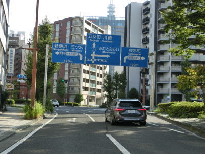 | 428.簡易的な中央分離帯の片側2車線道路 | 429.尾張屋橋 | 430.R1・神奈川r81浜松町交差点を左折 |
