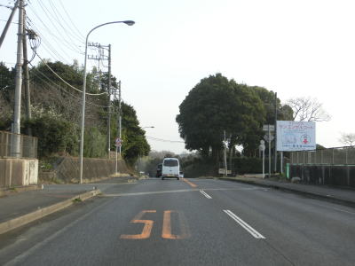| 鉄道の高架橋をくぐって以降は上り勾配の対面2車線道路を走る。カーブは多いものの緩やかなものばかりなので走りにくさを感じる事はない。野毛平工業団地入口交差点を過ぎて少し走ると十余三第一橋を渡る。橋の下は河川ではなくE51東関東道が通っている。十余三第一橋以降はアップダウンはなく平坦でカーブも少なくなる。 | ||