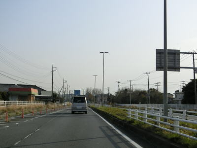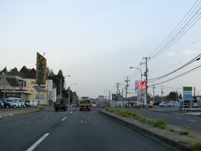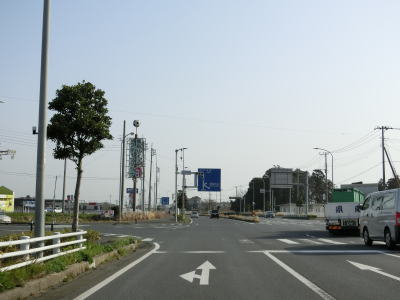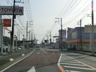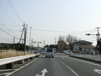 | 沿線にカーディーラーが増えてきた辺りで車線が増えて片側2車線道路になって市道との交差点を通過する。この市道は香取市の市街地のパスする事ができるが、案内標識には香取神宮しか表記されていない。下り勾配の山之辺橋を渡ると造成された住宅地の東側を通る。 | ||