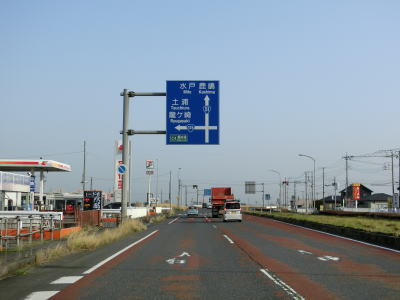 | 片側2車線道路の茨城r50との須賀交差点を通過し、潮来市の市街地の東端と言える場所で茨城r5曲松交差点を通過する。そのすぐ先で建設中の跨道橋の下をくぐるが、これはE51東関東道である。未開通の潮来〜鉾田ICは2026年度に開通予定である。 | ||