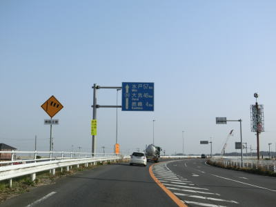 | 63.大須賀川流域に向かって下る | 64.「水戸86km 鹿嶋28km 香取11km」 | 65.E51東関東道・大栄IC |
