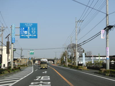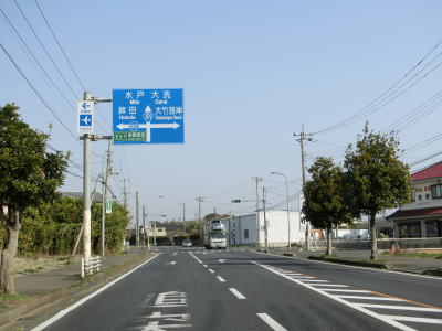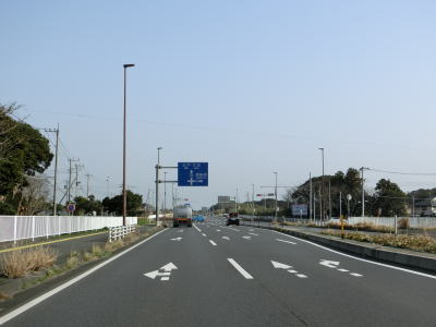| 塩崎交差点からは交通量の多い片側2車線道路を走り、程なくしてE51東水戸道の水戸大洗ICを通過する。ここで右側車線がインターチェンジへの右折専用車線になってしまう。 | ||