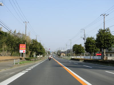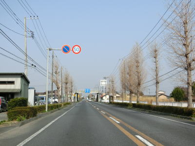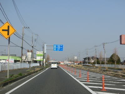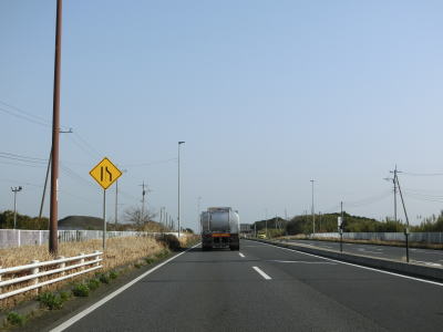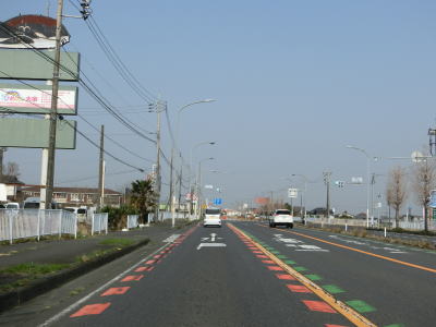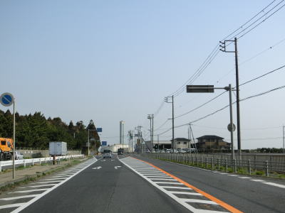 | 境標識がなければ市境と認識できないような場所を通って鉾田市に入る。道路状況は変わらずほぼ平坦でカーブのない対面2車線道路が続く。鹿島トラック休憩所を通り過ぎた後にゆずり車線区間がある。延長は700mに満たず長いとは言えないが、貴重な追越ポイントである。 | ||