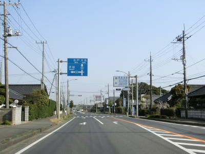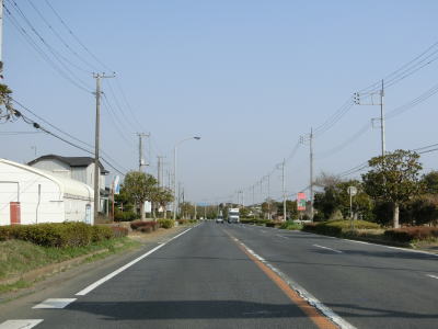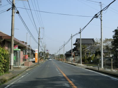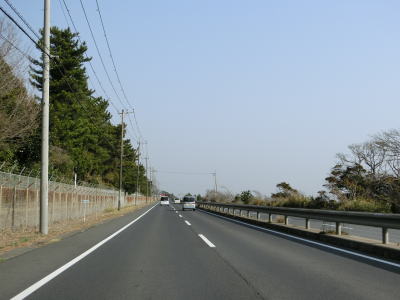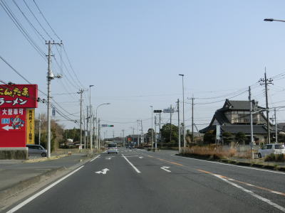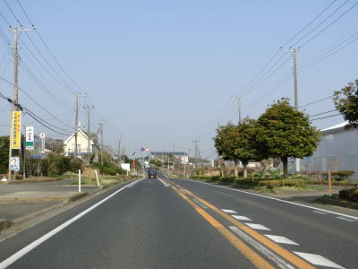 | 途切れる事なく続く家屋の間を走っていると鹿島灘海浜公園入口交差点を通過する。2車線快走路をさらに北上すると茨城r182大竹交差点を通過する。左折してr182を西に進むと鉾田市の中心部に行く事ができる。 | ||