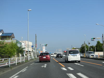 | 広沢第二高架橋を過ぎて平面道路に戻ってからも交通量の多い状態が続く。沿線には一般の家屋もあるが商業施設の方が多い。平日は通勤車両で、休日は商業施設利用車両で混雑してそうな雰囲気である。 | ||