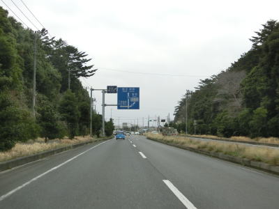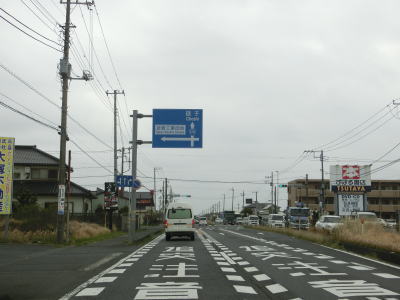 | 流れの良い対面2車線道路を南下していると大野潮騒はまなす公園の出入口に当たる角折交差点を通過する。鹿嶋市の中心部の手前で清水交差点を通過するが、明石方面の市道はR51の旧道であり、案内標識にはおにぎりが消された跡が確認できる。 | ||