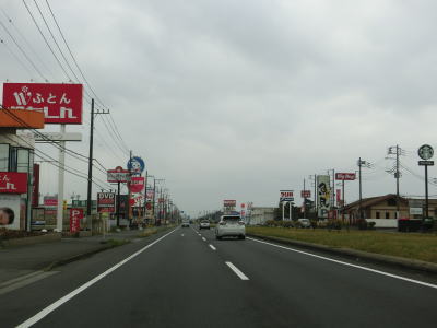| 神栖市の中心部から離れているが沿線には商業施設が少ないながらも建っている。平坦で見通しの良い直線道路で走りやすいのだが、信号機の切り替わりタイミングが悪いのか信号停車が多く快走とはならない。 | ||