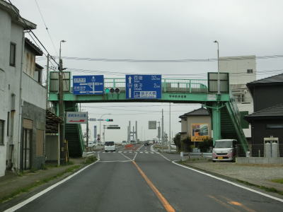 | 現道と並走している片側2車線道路を走っていると銚子大橋情報の電光掲示板の傍を通る。おそらく渋滞情報の表示がメインと思われる。茨城r198とのかもめ大橋入口交差点を通過するが、名称の由来の利根かもめ大橋は千葉県銚子市との間の利根川に架かっている有料道路である。料金所は左岸、茨城県側にあるが管理しているのは千葉県道路公社である。 | ||