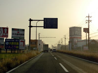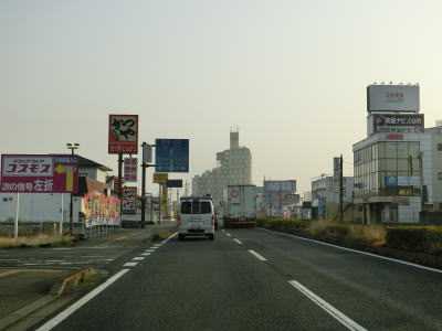 | 50.左側には拡幅用地が確認できる | 51.山武市に入る | 52.商業施設が点在している |