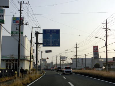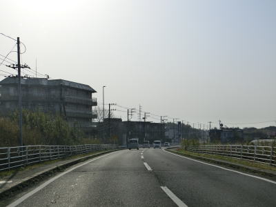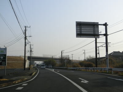 | 成東橋から右カーブしながら下っていると千葉r118富田交差点を通過し、以降は山裾の平坦な場所を走る。沿線にはいちご園の看板が多くみられるが、旧成東町は関東最大のいちご狩り地域らしい。千葉r112早舟交差点を通過して旧松尾町に入って新田越橋を渡る。 | ||
