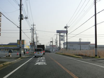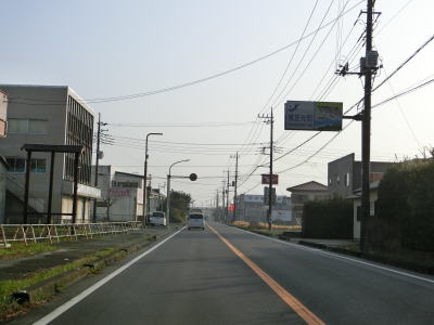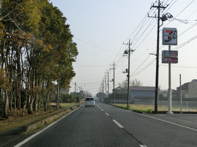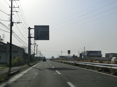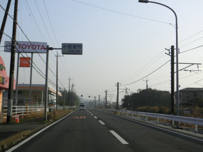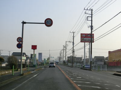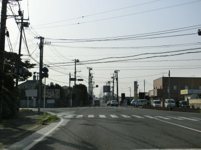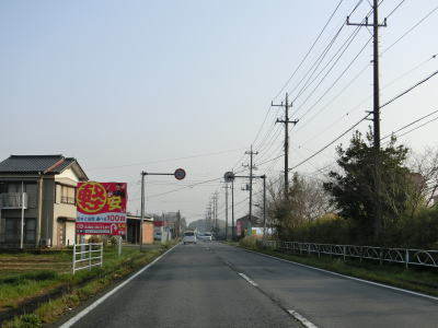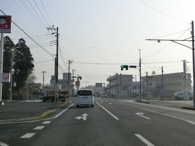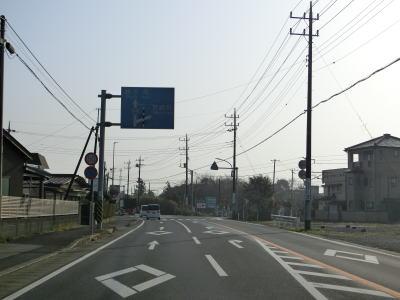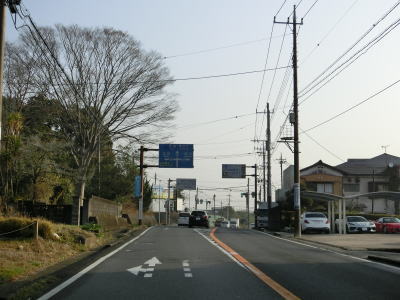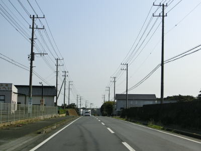 | 田間交差点以北は対面2車線道路になるが、北向き車線側には拡幅用地とみられる土地が確認できる。また、東金市の市街地から離れて行っているものの沿線には商業施設が点在している。山武市に入ってからも道路状況と沿線の建物状況に特に変化は見られない。 | ||
