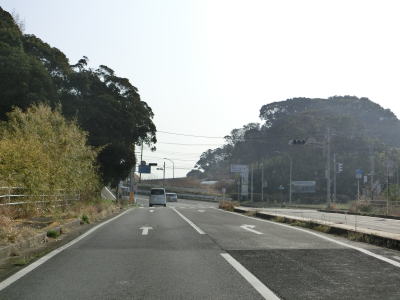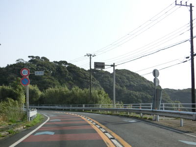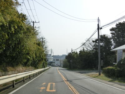 | 上り勾配になり左カーブが始まり辺りで市境を越えて銚子市に入る。しばらく上り勾配が続いた後に磯見川に向かって下り勾配に転じる。その後は再び上り勾配になる。対面2車線道路で歩道が完全に整備されているとは言い難い道路状況だが、交通量は意外に多い。 | ||