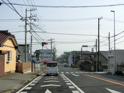 | 旧道と思われる市道との交差点を過ぎると拡幅用地が途切れてしまう。作田川に架かる成東大橋を渡ると山武市の市街地に入って千葉r76・r121津辺交差点を通過する。右折すれば山武市役所に、左折すれば成東駅に行く事ができる。その後は緩やかな勾配を上って成東橋でJR総武本線と東金線を越える。成東駅は東金線の終点の駅である。 | ||