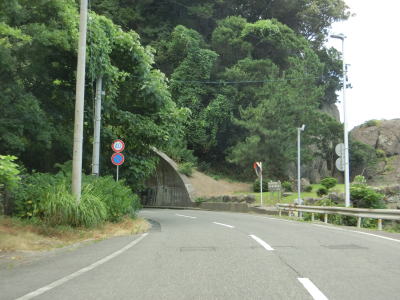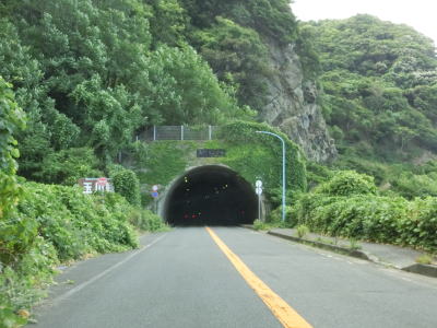 | 漁港だけでなく海水浴場もある鮎川町集落を走っていると前方に松ヶ鼻隧道が見えてくる。国見小・中学校の前を通り過ぎた直後に松ヶ鼻隧道をくぐる。名称が“隧道”となっているが1992年に開通(拡幅?)されたトンネルで山側に歩道が設置されている。松ヶ鼻隧道を出ると白浜漁港を擁する白浜町集落を通り抜ける。 | ||