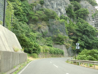 | 168.越廼バイパス | 169.越廼バイパスを過ぎると狭苦しい2車線道路になる | 170.海面とは高低差あり |