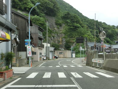 | 梅浦交差点から約2.9kmで町道との道口交差点を左折する。道の駅「越前」が案内されている直進の町道は旧道である。道口交差点からは海岸を背にして内陸に向かい、かなりの急勾配を上る。約300mで福井r264との交差点を右折して敦賀方面に進む。 | ||