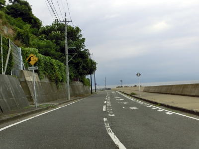 | 旧道と合流してからもしばらくはセンターライン付きの2車線道路が続くが、茂原人工海水浴場の手前で1.8車線幅道路になってしまう。その後はセンターラインがあったり広くなったりするがどれも距離が短く離合可能箇所程度の機能しかない。 | ||