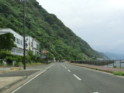 | 白浜港を過ぎると直線ながら1.5車線幅と狭い区間がある。それを過ぎるとセンターラインが復活し、高佐漁港を過ぎた直後に高佐隧道をくぐる。山側には旧道と思われる道路が並走しており、素掘りのトンネルが現在でも通行可能な状態で残っている。高佐隧道を出てからも2車線道路が続いているが、車線幅が若干広くなって走りやすくなる。 | ||