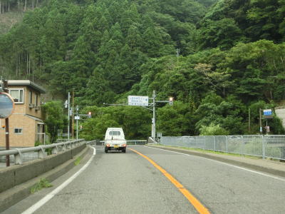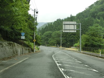 | 桜橋交差点を過ぎて6%の勾配を下っていると旧道との交差点を通過する。厳密に言えば旧道との連絡道路のような道路であり、R8の河野川橋の下を通っている道路が旧道である。R8の桜橋バイパスが供用されるまでのR305には僅かではあるがR8との重複区間があった。旧道との交差点から約3.3km先にホノケ山トンネル開通以前の分断区間の端点があったが、現在は国道の指定を外れている。2014年9月23日に旧道の途中まで走行した記録はこちらへ。 旧道との交差点を過ぎてからも上り勾配が続いている。勾配は6%だが、道路状況が良く交通量も少ないため走りにくさは感じない。河内集落との間に河野川があるせいもあって沿線の家屋は存在しない。 |