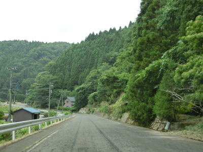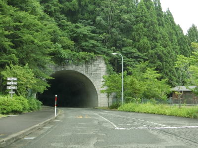 | 桜橋交差点から約1.9kmでホノケ山トンネルに入る。全長2709mと長大なトンネルで、町境を跨いでいるため南越前町に入るが、越前市域を1.0km程度通っている。トンネルを出ると6%勾配を下って行く。センターラインはほぼ消えているが、2車線道路なので走りにくさは感じない。北陸新幹線と交差しているが、新北陸トンネルの上であり視認する事はできない。 | ||