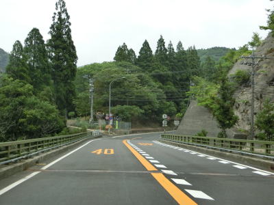 | 254.奥野々集落の西端にやや狭い箇所あり | 255.集落内の制限側道も50km/h | 256.交通量の少ない快走路 |