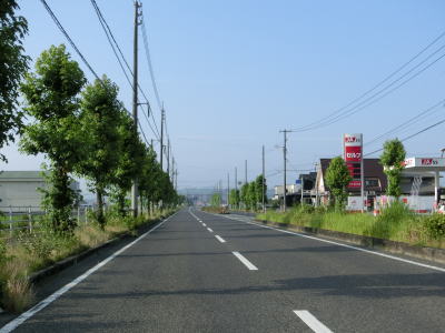 | 393.「倉敷11km 吉備路25km」 | 394.水田の中を通り抜けるバイパス | 395.早朝の交通量は少ない |