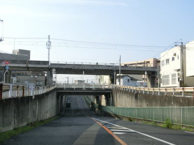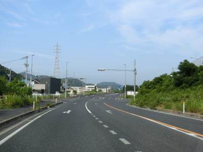 | かつてR2だった対面2車線道路を南西の方角に向かって走る。ほぼ平坦な直線道路で線形は良いが、歩道が片側にしか整備されていない区間が少なからずある。400番台国道であれば普通と言える状態なのだろうが、一桁幹線国道だったと考えると貧弱な道路状況と言わざるを得ない。 大島交差点から約5.7kmでR2との大西交差点を通過する。現在のR2は片側2車線の大西高架橋で交差点の上を越えており、一桁幹線国道に恥じない道路状況である。なお、R2は大西交差点を境に東側が岡山バイパス、西側が玉島バイパスとなっている。 |