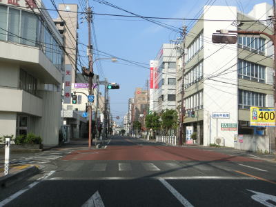 | 倉敷駅前交差点を過ぎると狭い歩道の対面2車線道路を進み、岡山r274とのNTT倉敷東交差点を通過する。西隣の市道とのNTT前交差点は直進だが、右折車線の有無によって若干カーブしながら通り抜ける必要がある。さらに進むと片側2車線の岡山r60と同じく片側2車線の市道との老松西交差点を通過する。倉敷市の中心部とあって信号機付きの交差点があるため流れは良くない。交通量の多い昼間であれば渋滞の発生も充分考えられる。 | ||
