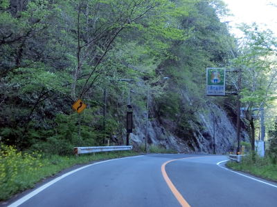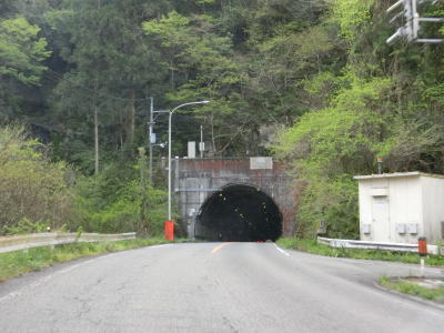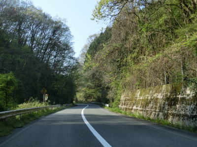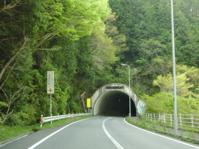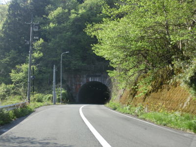 | 矢多田川の谷筋を南下していると松崎大橋でJR福塩線の上を通る。内部でカーブしている松崎トンネルをくぐり、日向中集落や日向下集落を通り抜ける。谷筋を通っているとは言え勾配もカーブも緩やかで走りやすい道路状況である。 | ||